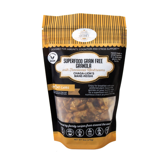 This is our superfood superstar! With fresh, all natural ingredients such as organic pumpkin seeds, dried wild blueberries, Maca and mushroom extracts (Chaga, Lion's Mane, and Reishi) you can delight your taste buds with flavors that you and your family are sure to love. Sprinkle over soups and salads or yogurt. Feel good about indulging in a tasty treat that is equally delicious and healthy, made with organic, clean ingredients.